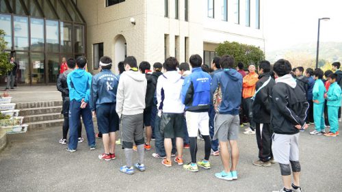 スタート地点では、一区を走る選手や控えの選手、大会関係者の方々が開会式に臨みました。