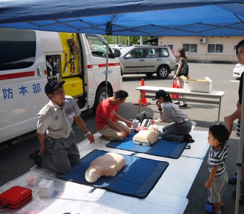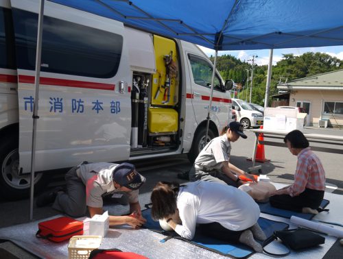 午前中は、町内のスーパーで心肺蘇生法の講習会や、救急医療週間のPR活動を行いました。