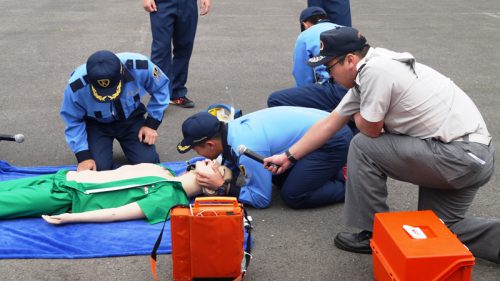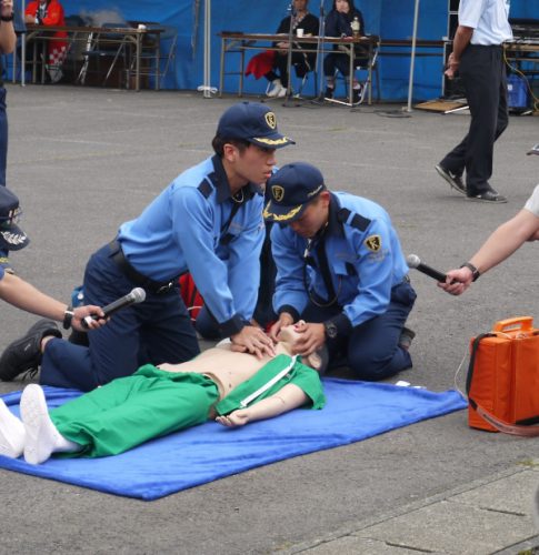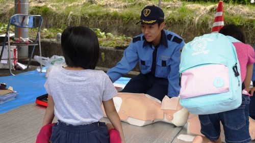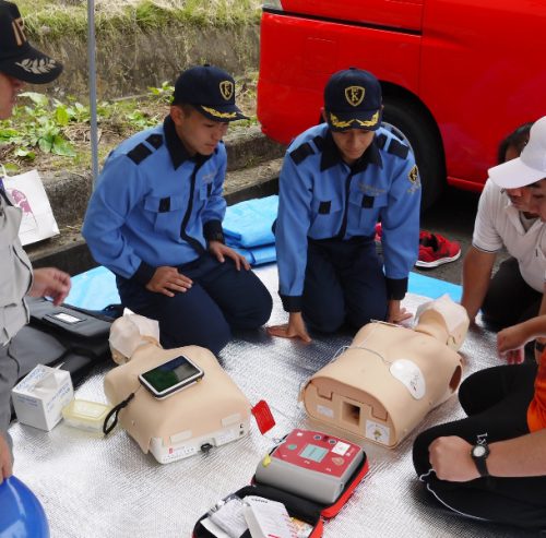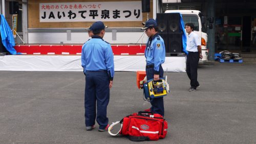 一関東消防署室根分署の皆さんと一緒に心肺蘇生法の普及活動をはじめ、