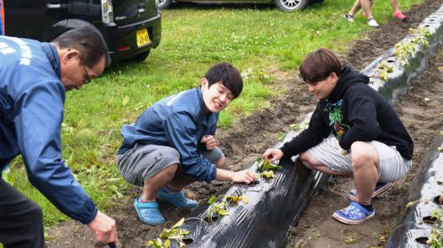この日は、一年生総出で校舎の側にある畑にサツマイモの苗を植えました。
