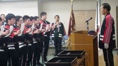 緊張の面持ちで入団式に臨んだ一年生は、辞令書も受け取り、早くも気合十分です!