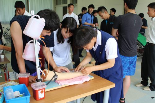 まず午前は、救急救命学科について写真等を用いながら紹介したり、学校生活や寮生活についての説明を行いました。