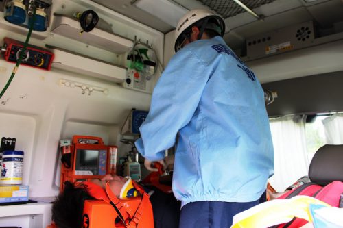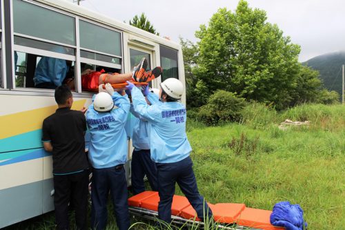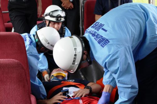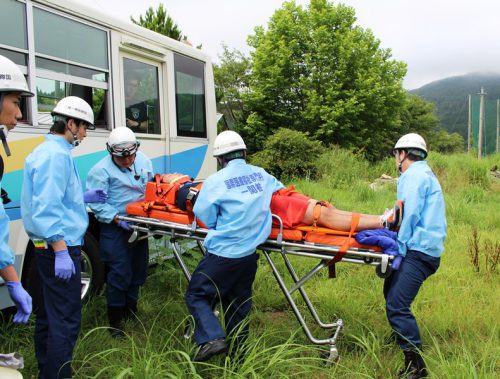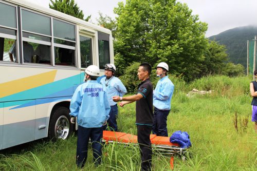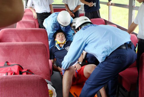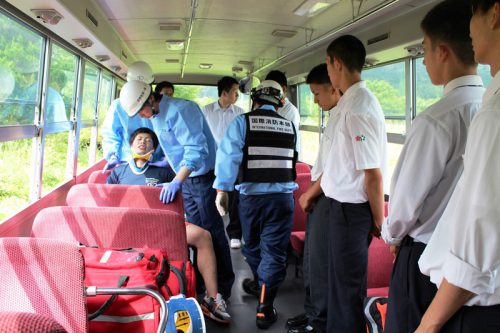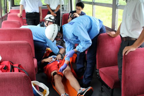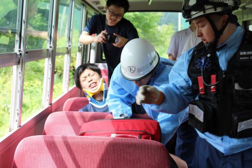 大型バスが追突し、多数傷病者が出た模様との通報を受け、国際医療救急隊が出場!!