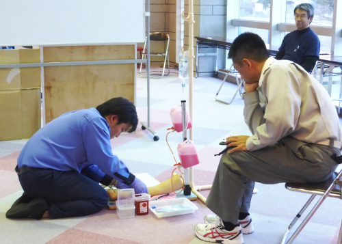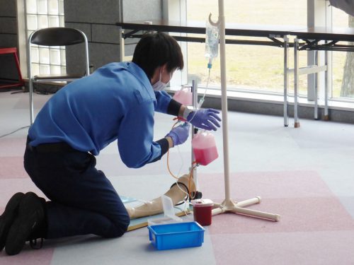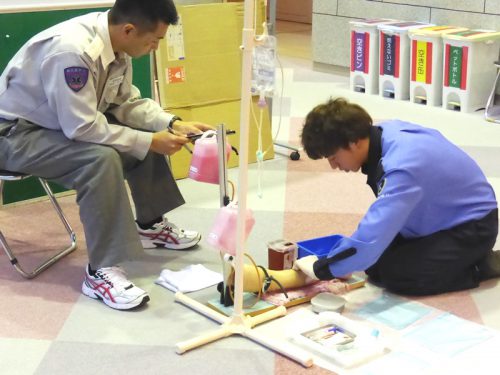 心臓が止まっている傷病者などに、輸液をするため血管に針を留置する手技です。