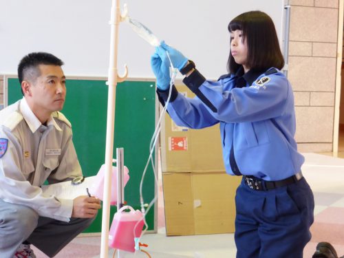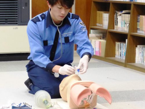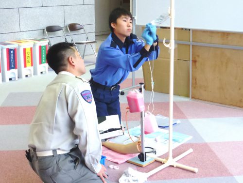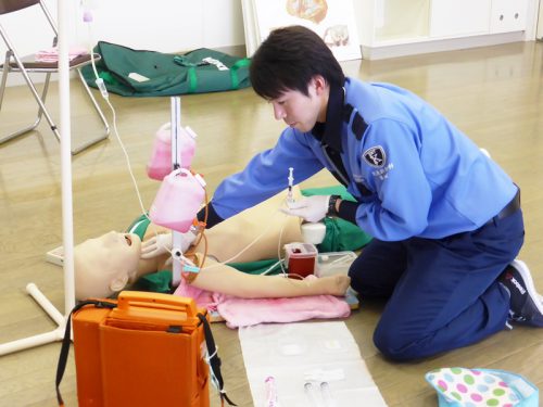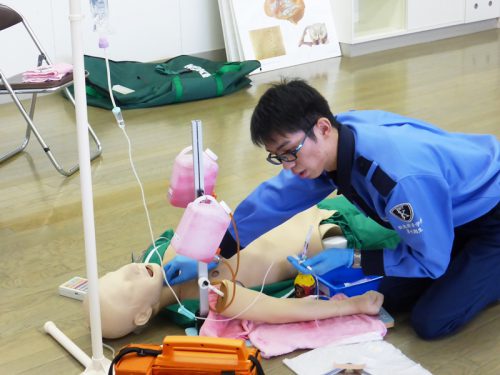 心臓の動きが停止している傷病者にアドレナリンという薬剤を使用し自己心拍の再開を目指します。