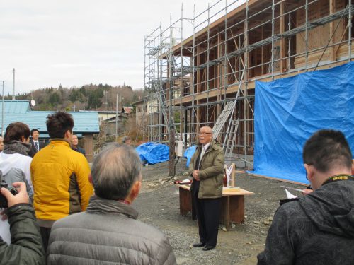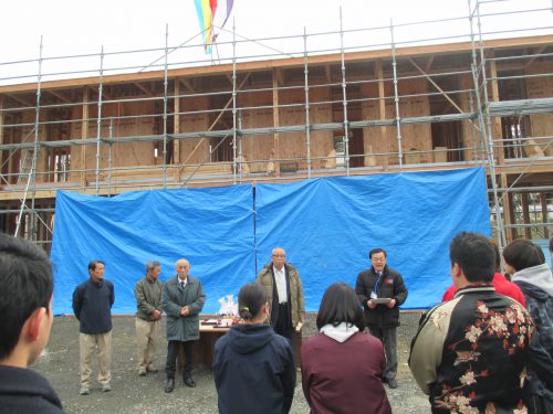 11月25日、新学生寮上棟式が現在建設中の一関市大東町摺沢の現地で行われました。