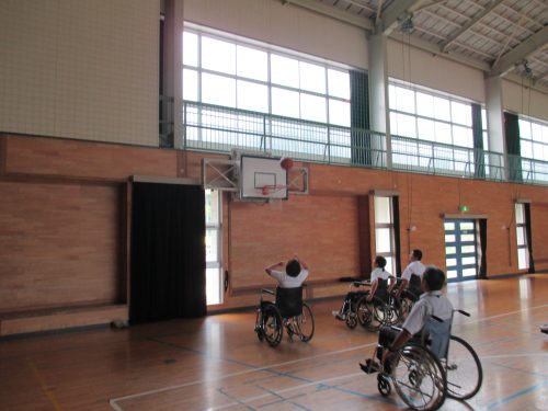 今回は、体験授業の車いすバスケの様子を掲載しました。
